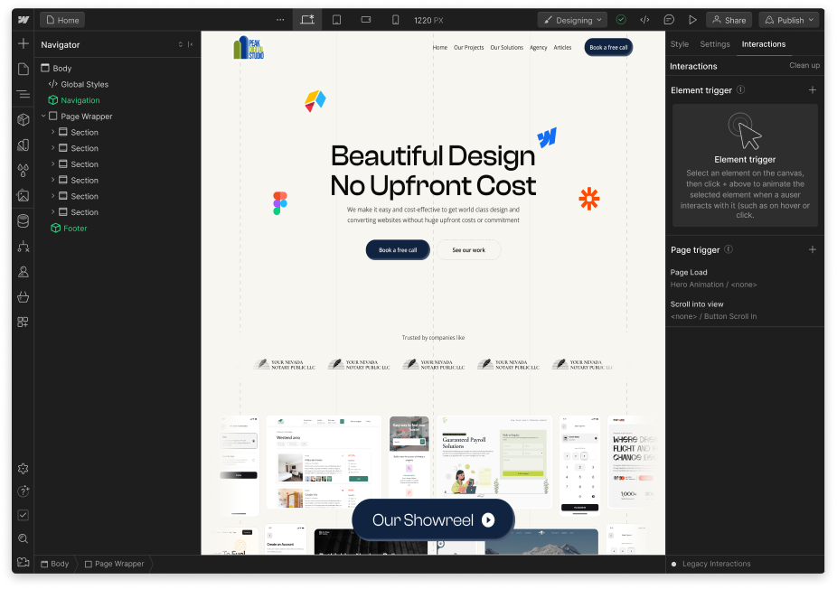 Pretty much anything design or web-related: websites, landing pages, brand identity, decks, ads, social graphics, UI/UX, you name it. If it’s outside our wheelhouse (say, a full TV commercial), we’ll let you know.